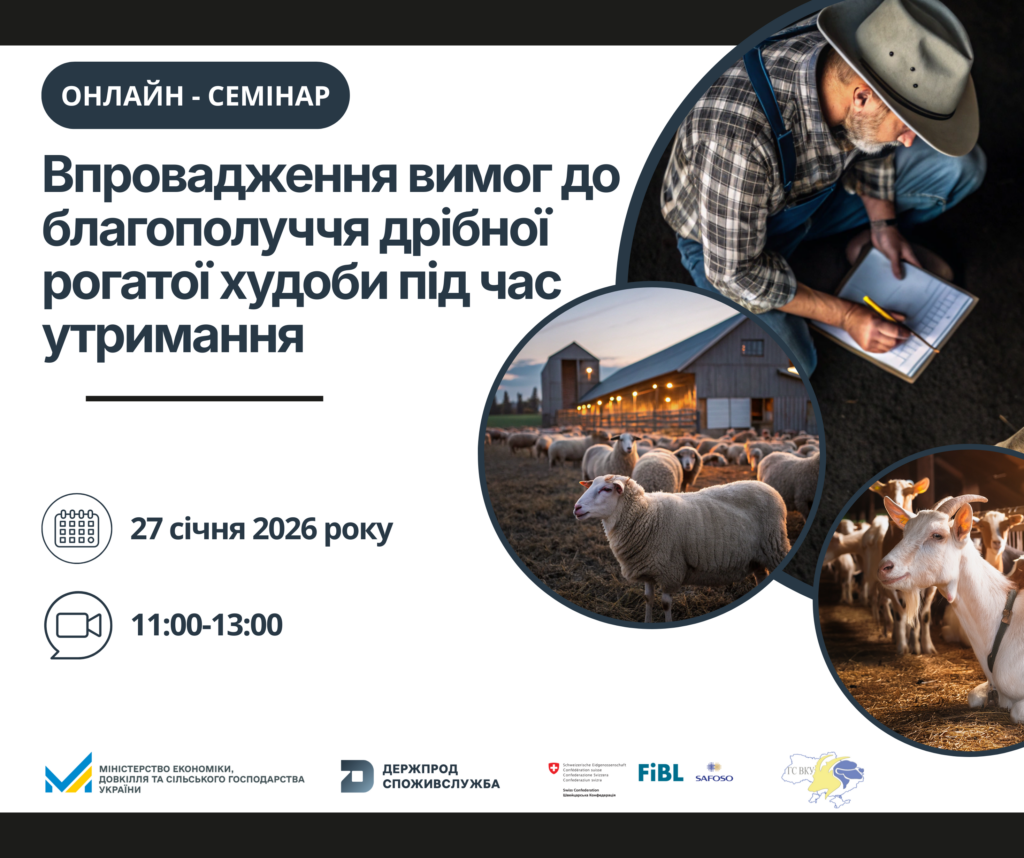 З метою підтримки операторів ринку в умовах дії нових правил проводиться тематичний онлайн-семінар, присвячений практичним аспектам упровадження вимог щодо благополуччя дрібної рогатої худоби.